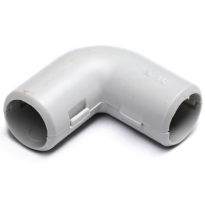 Колено открывающееся, 90°. Колено предназначено для соединения жёстких гладких труб одного диаметра под углом 90°. Материал: полипропилен. Температура эксплуатации: от -25°С до +60°С