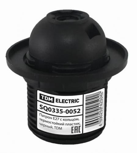 Патрон E27 с кольцом, изготовленный из термостойкого пластика в черном цвете от компании TDM - идеальное решение для вашего осветительного оборудования. Этот патрон обеспечивает надежное крепление лампы с цоколем E27 и защищает от перегрева благодаря своим термостойким свойствам. Прост в установке и использовании, он подходит для различных типов ламп и идеально впишется в интерьер вашего помещения. Обеспечьте безопасность и надежность освещения с патроном E27 от TDM.