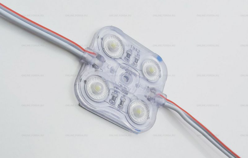 Модуль оснащен мощными светодиодами серии 2835, способными генерировать поток света до 230 лм при белой цветовой температуре 6500K. Такая холодная оттеночность и интенсивность света позволяют достичь эффектного эффекта "дневного света", что особенно важно для придания продуктам или объектам рекламного характера дополнительной яркости и заметности.