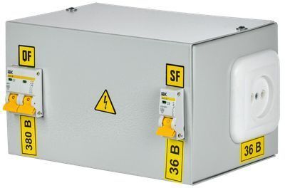 Предназначены для питания местного или ремонтного освещения, а также для подключения переносных светильников и инструмента. Ящики ЯТП имеют разборный металлический корпус, внутри которого установлены: - однофазный понижающий трансформатор ОСО-0,25 мощностью 250 Вт; - автоматические выключатели ВА47-29; - штепсельная розетка.