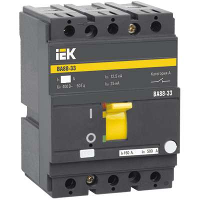 Автоматические выключатели ВА88 предназначены для проведения тока в нормальном режиме и отключения тока при коротких замыканиях, перегрузке, недопустимых снижениях напряжения, а также для оперативных включений и отключений участков электрических цепей и рассчитаны для эксплуатации в электроустановках с номинальным рабочим напряжением до 400 В и на номинальные токи от 12,5 до 1600 А. Соответствуют требованиям ГОСТ Р 50030.2.