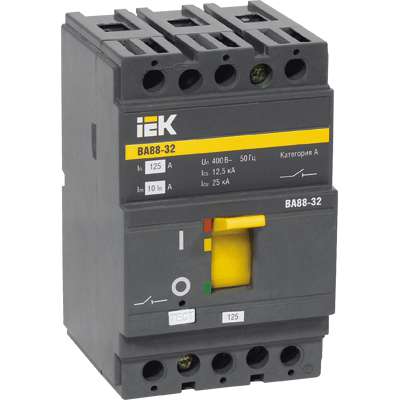 Автоматические выключатели ВА88 предназначены для проведения тока в нормальном режиме и отключения тока при коротких замыканиях, перегрузке, недопустимых снижениях напряжения, а также для оперативных включений и отключений участков электрических цепей и рассчитаны для эксплуатации в электроустановках с номинальным рабочим напряжением до 400 В и на номинальные токи от 12,5 до 1600 А. Соответствуют требованиям ГОСТ Р 50030.2.