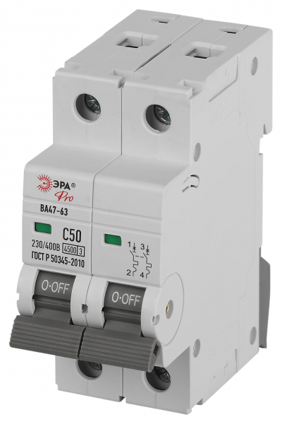В нашем магазине «Главэлектрика» в Перми, вы можете приобрести товар: «Автоматический выключатель ЭРА PRO VA63-2P50C4.5 ВА47-63 2P 50А кривая C 4,5кА (кратно 1)» с доставкой по г. Пермь.