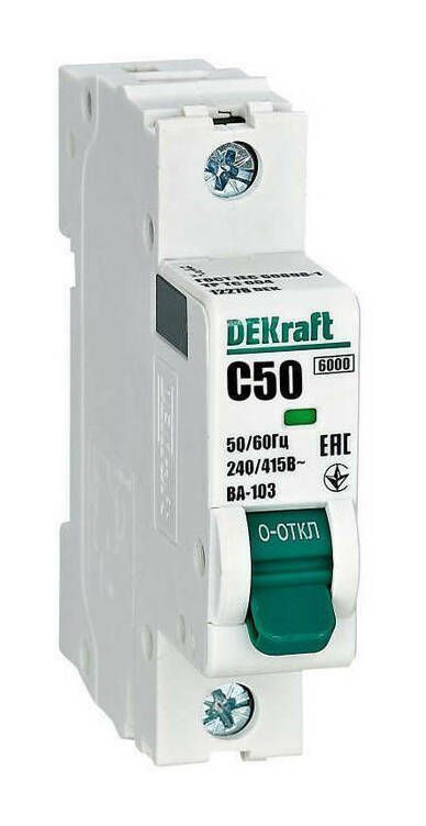 В нашем магазине «Главэлектрика» в Перми, вы можете приобрести товар: «Автоматический выключатель DEKraft 1-полюсный ВА-103 C50 1Р 6кА» с доставкой по г. Пермь.