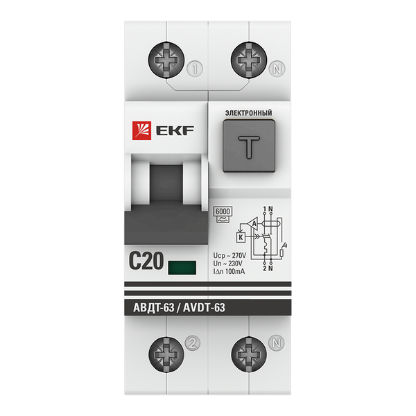 ОБНОВЛЕНИЕ ЛИНЕЙКИ PROXIMA Артикул аналог: D63N26EA20C100 Автоматический выключатель дифференциального тока АВДТ-63 EKF PROxima представляет аппарат, сочетающий функции автоматического выключателя с электромеханическим или электронным УЗО. При обнаружении автоматическим выключателем в защищаемом участке сети тока утечки (повреждения) на землю или сверхтока (тока перегрузки или короткого замыкания) происходит срабатывание устройства, приводящее к отключению защищаемой сети. Возможна коммутация алюминиевым и медным проводником. Автоматический выключатель дифференциального тока малогабаритный АВДТ-63М EKF PROxima представляет аппарат, сочетающий функции автоматического выключателя с электронным УЗО типа АС в компактном корпусе шириной один модуль. При обнаружении автоматическим выключателем на защищаемом участке сети тока утечки (повреждения) на землю или сверхтока (тока перегрузки или короткого замыкания) происходит срабатывание устройства, приводящее к отключению защищаемой сети. Особое отличие дифференциальных автоматических выключателей EKF с электронным УЗО – в наличии блока защиты от перенапряжения. Возможна коммутация алюминиевым и медным проводом.