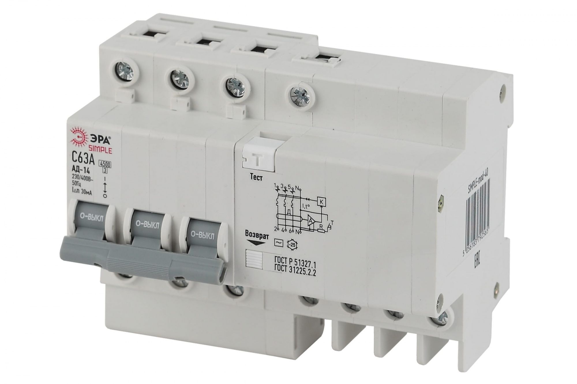 SIMPLE-mod-36 ЭРА SIMPLE Автоматический выключатель дифференциального тока 3P+N 16А 30мА тип АС х-ка