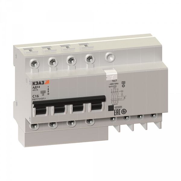 Дифавтомат КЭАЗ АД14 4P 63А (C) 4.5 кА, 300 мА ( AC ), 141617 - это электрическое устройство, которое сочетает в себе функции автоматического выключателя и дифференциального автомата.Он предназначен для защиты электрических сетей от перегрузок и коротких замыканий, а также обеспечивает защиту от токов утечки.