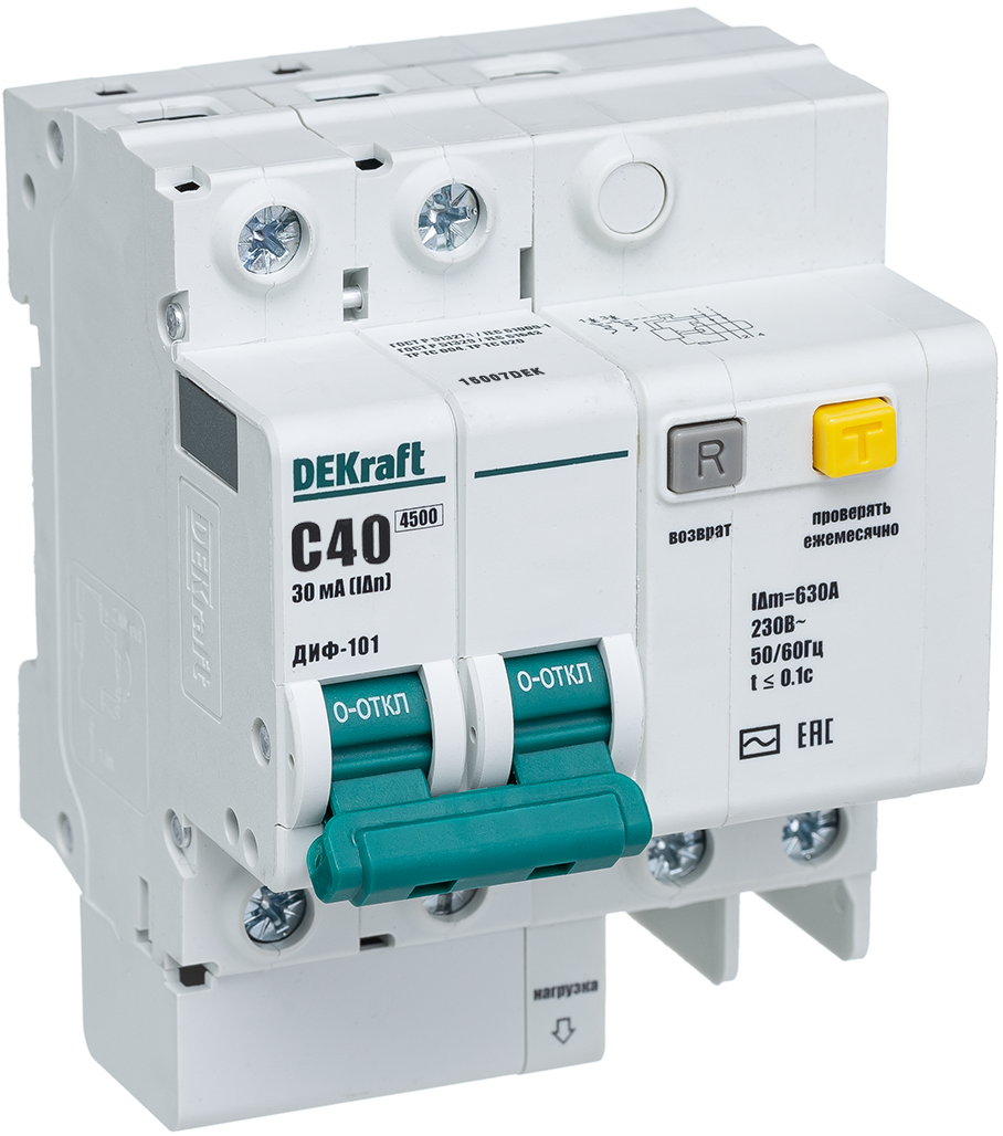 В нашем магазине «Главэлектрика» в Перми, вы можете приобрести товар: «Диф. автомат 2П 40А 30мА DEKrАft ДИФ-101 тип АС хар-кА С 4,5кА » с доставкой по г. Пермь.