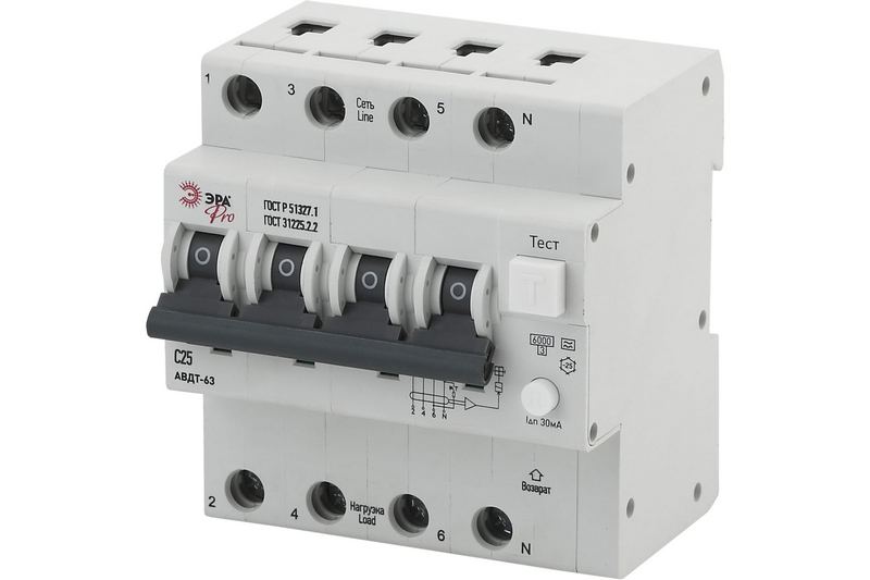 Дифавтомат Эра АВДТ 63 3Р+N С25А 30мА 6кА тип А, Б0031844 является надежным и безопасным элементом электрической системы, обеспечивая защиту от перегрузок, короткого замыкания и утечки тока.