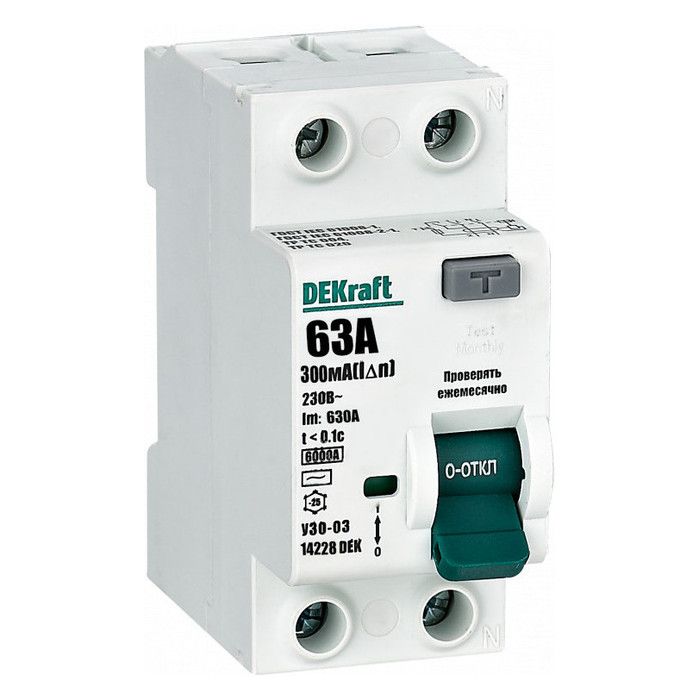 УЗО DEKraft УЗО-03 2P 63А 6 кА, 300 мА (AC), 14228DEK - это надежное устройство защиты от утечки тока и перегрузок в электрических сетях. Данный УЗО имеет два полюса, номинальный ток 63А и высокую степень защиты - 6 кА. Триггерный ток составляет 300 мА (AC), что позволяет эффективно реагировать на незначительные утечки тока и предотвращать возможные аварийные ситуации. Модель 14228DEK отличается надежностью, долгим сроком службы и простотой в установке.