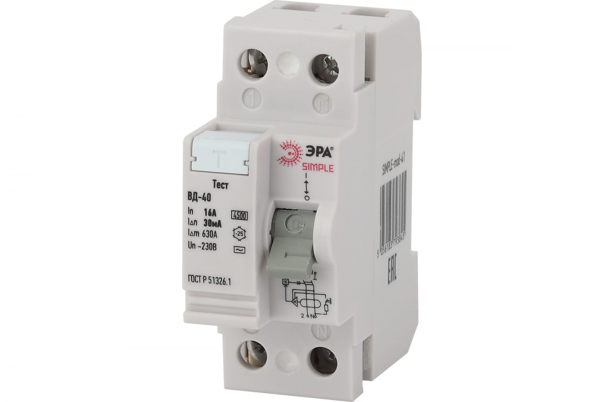 УЗО ЭРА SIMPLE ВД-40 2P 16А/30мА электронное Б0039261 - надежное и качественное устройство, предназначенное для обеспечения безопасности электрических сетей. Это электронное устройство имеет низкий уровень тока дифференциальной защиты в размере 30мА, что позволяет быстро обнаружить любые неисправности и автоматически отключить подачу электроэнергии.