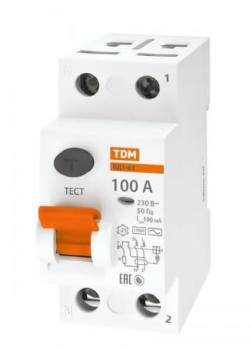 УЗО TDM ВД1-63 2P 100А 100мА (AC), SQ0203-0023 - это двухполюсное устройство защитного отключения (УЗО) производства TDM.Оно предназначено для обеспечения безопасности электрических сетей и оборудования, предотвращая возможные аварийные ситуации и защищая от поражения электрическим током.